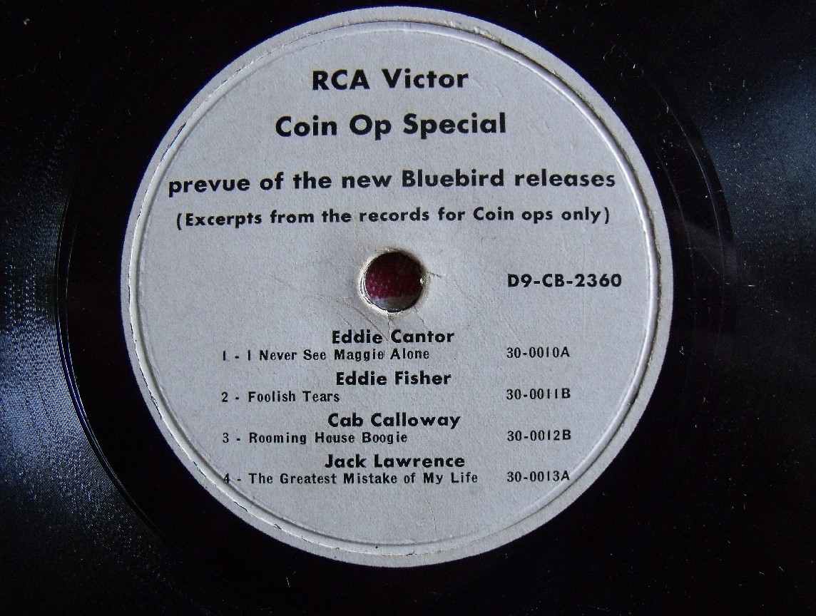 This is an unusual RCA Victor promotional record I recently obtained. It was aimed at jukebox